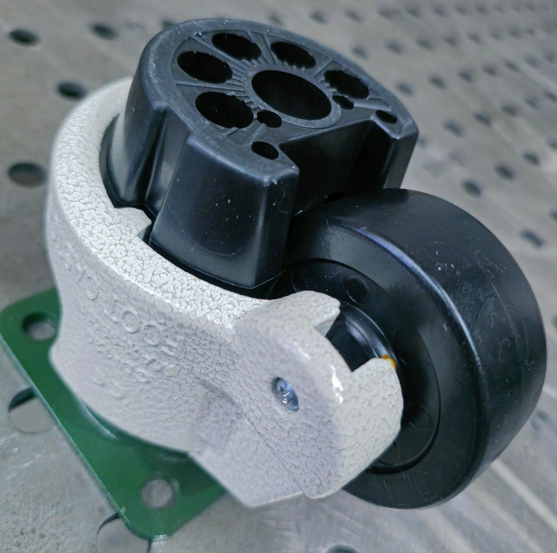 The GD-120 levelling castor delivers robust performance for demanding industrial applications. Rated to 1000kg, this heavy-duty wheel suits welding tables, fabrication benches, and general workshop equipment requiring stable, adjustable positioning. The integrated levelling mechanism allows precise height adjustment across uneven floors, eliminating wobble and ensuring optimal working conditions. Constructed for durability in harsh environments, it accommodates both bolt-down and weld-on installation methods. Threaded weld-on mounting plates are available separately for seamless integration into custom setups.
